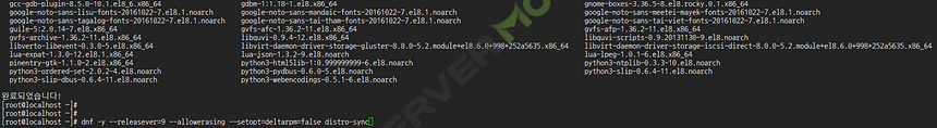 # dnf -y --releasever=9 --allowerasing --setopt=deltarpm=false distro-sync