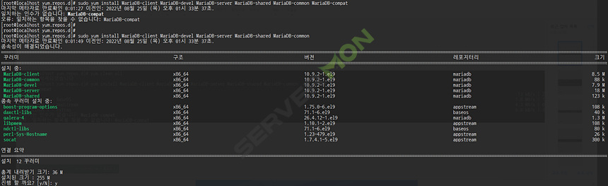 2. yum clean 및 mariadb 설치