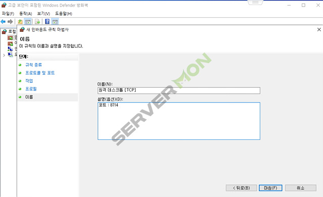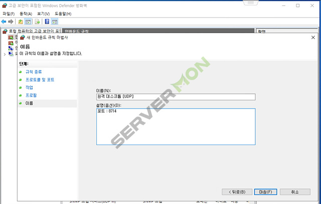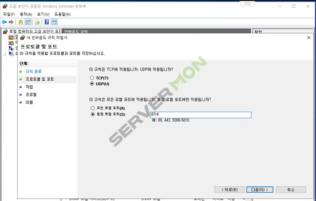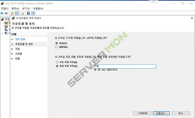 # 하기 순서대로 TCP 및 UDP 도 동일하게 설정 및 추가
