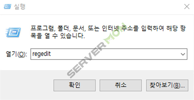 실행창을 연 후 regedit 를 입력합니다.