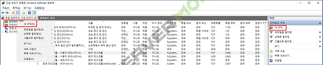 # 시작 ▶ windows 관리 도구 ▶ 고급 보안이 포함된 windows defender 방화벽