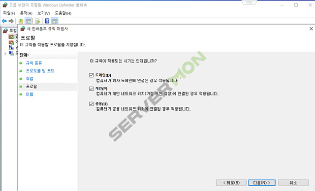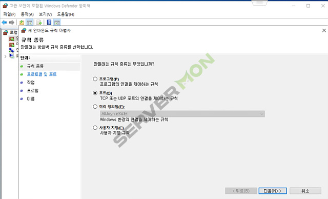 # 시작 ▶ windows 관리 도구 ▶ 고급 보안이 포함된 windows defender 방화벽