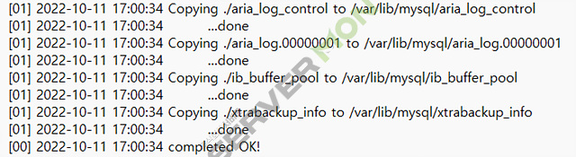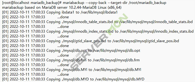 # mariabackup --copy-back --target-dir /root/mariadb_backup