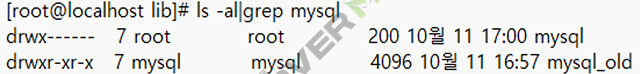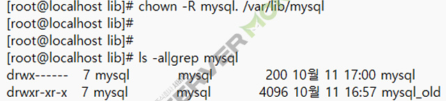 서비스 실행을 위해선 mysql 디렉토리를 mysql 권한으로 변경해 줍니다.