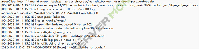 mariabackup --backup --user=root --password=oracle --target-dir=/root/mariadb_backup