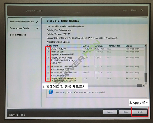 Firmware Update 할 항목을 체크하여 Apply 버튼을 클릭합니다.