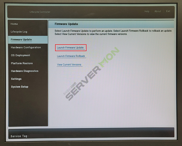 Lifecycle Controller에 진입한 후 사진에 표시된 부분을 참고하여 Firmware Update 메뉴를 선택합니다.