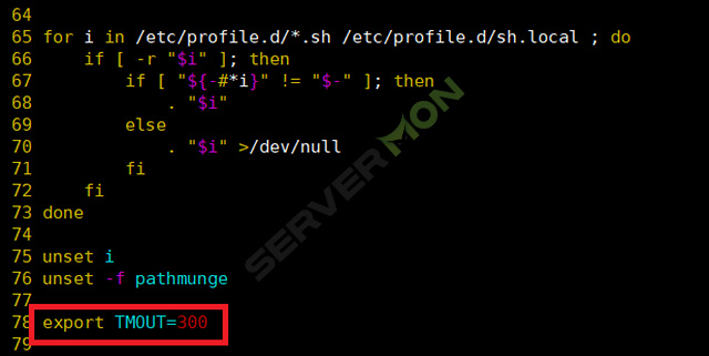 2) 해당 파일 최하단에 export TMOUT=300 (초단위) 를 추가한 뒤 저장 합니다.