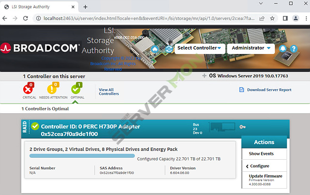 LSA를 사용하여 컨트롤러를 모니터링하고 컨트롤러의 드라이브를 구성할 수 있습니다.
