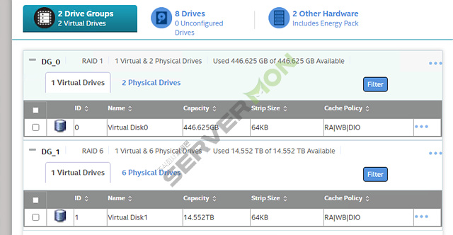 해당 인클로저에 연결된 PD/VD 리스트 및 사용하고 있는 Battery 의 상태 또한 확인이 가능합니다.