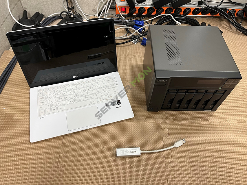 NAS에 연결할 케이블과 노트북을 준비합니다.