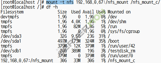# mount -t nfs 192.168.0.67:/nfs_mount /nfs_mount_c/
