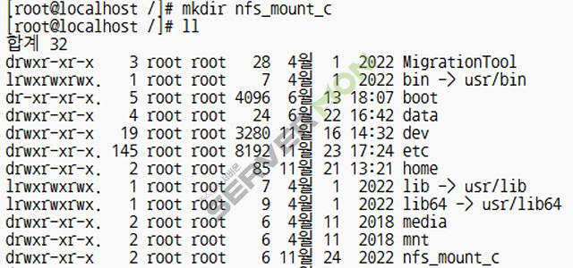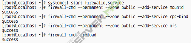 # firewall-cmd --permanent --zone public --add-service nfs (방화벽 허용)