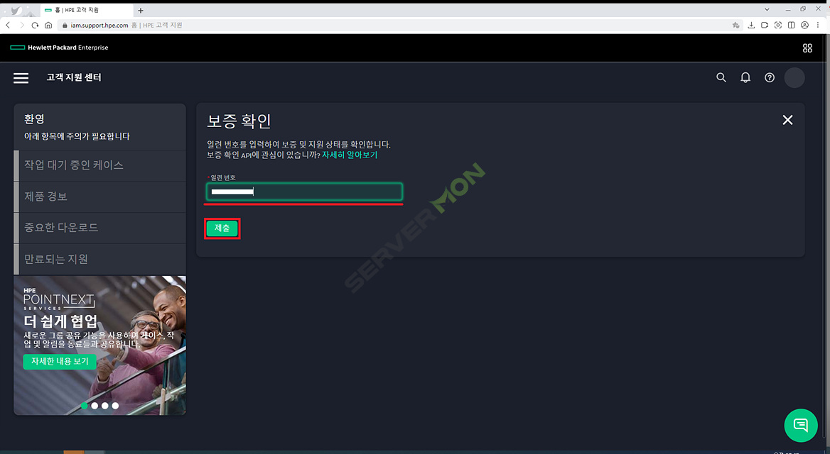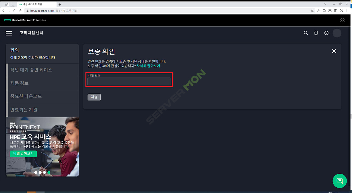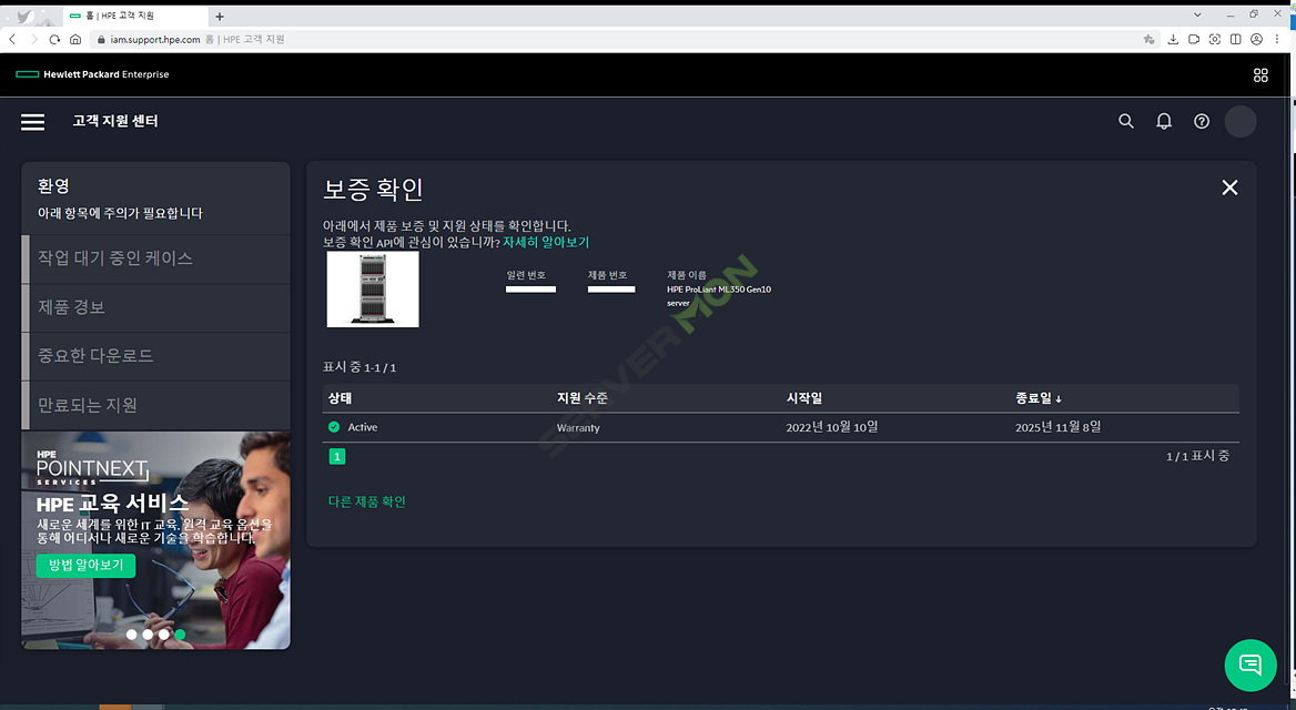 2022년 12월부로 기존에 HPE에서 제공하던 워런티 사이트가 서비스 종료되었습니다.