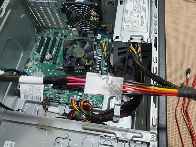 먼저 파워케이블은 서버 내 파워에서 나온 8핀 전원 공급 케이블과 연결합니다.