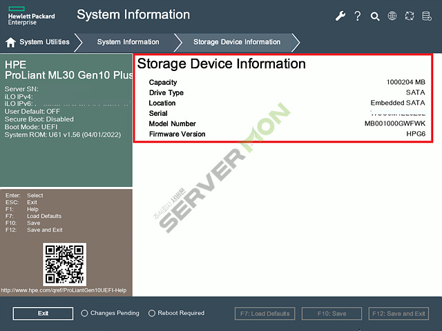 아래 사진과 같이 System Information > Storage Device Information 으로 진입하여