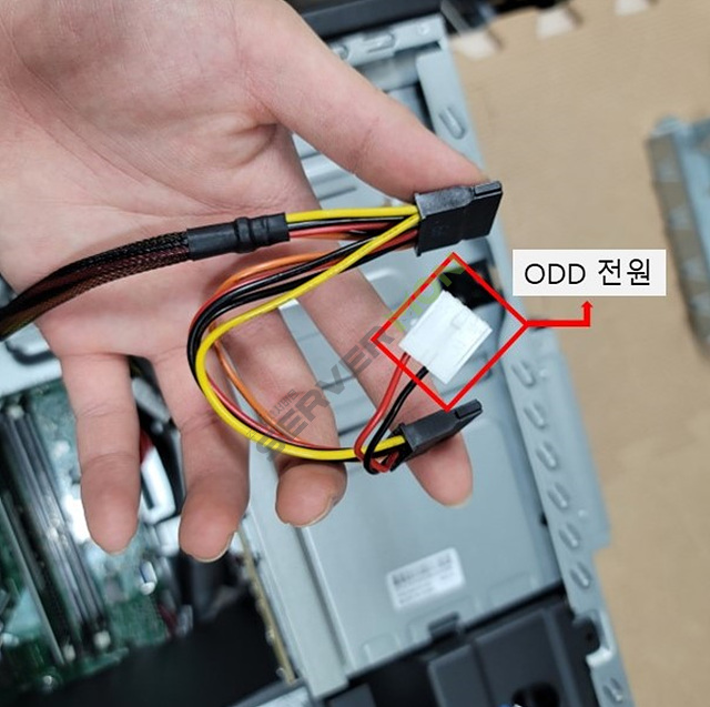 이 전원케이블을 HPE ML30 Gen10 Slim ODD Enablement Kit의 구성품 케이블과 연결 해줍니다.