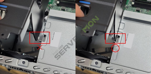 혹시 잘못 장착되었거나 이미 장착된 HPE ML30 Gen10 Slim ODD Enablement Kit 분리가 필요하다면 위 사진 참고해 주세요. 표시된 부분을 살짝 들어올리고 HPE ML30 Gen10 Slim ODD Enablement Kit 앞부분을 땡겨서 다시 분리 할 수 있습니다.