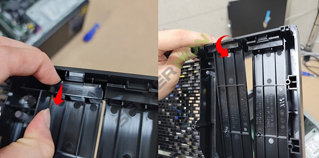 이제 마지막으로 전면패널에서 ODD 자리를 막고있는 커버만 제거하면 모든 작업이 끝납니다.
