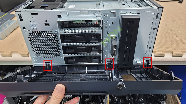 HPE ML30 Gen10 Slim ODD Enablement Kit이 장착 될 자리를 막고있는 브라켓을 제거합니다.