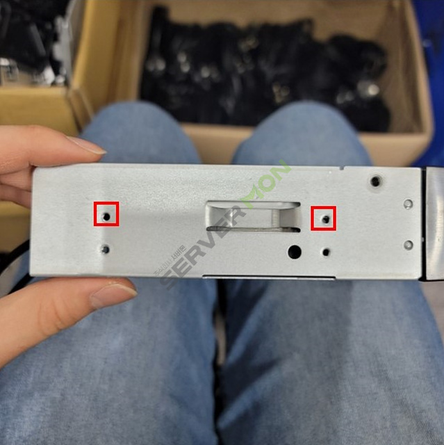 빨간네모로 표시한 부분이 HPE ML30 Gen10 Slim ODD Enablement Kit 장착에 필요한 나사입니다.