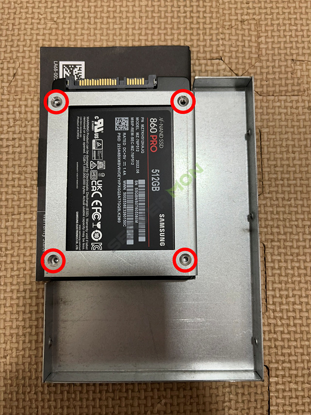 2.5inch SSD를 사진과같이 변환가이드의 스크류홀에 맞춥니다.