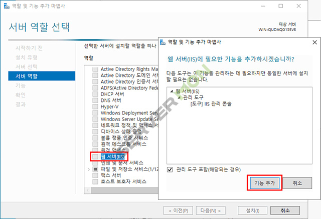 웹 서버(IIS) 체크 후 기능추가