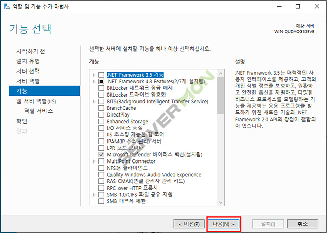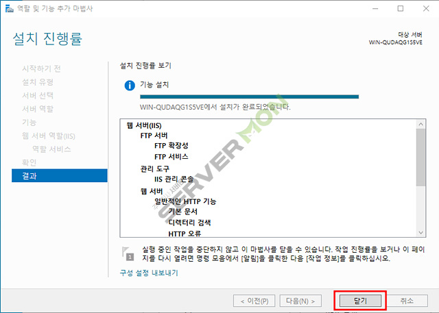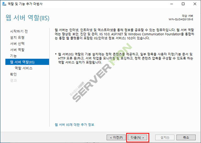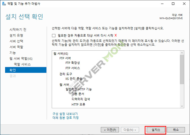 웹 서버(IIS) 체크 후 기능추가