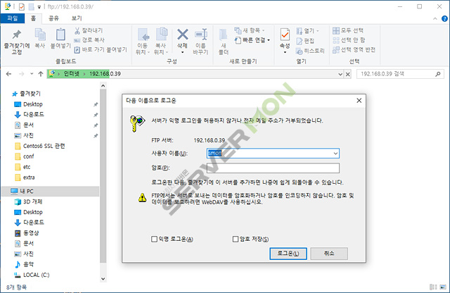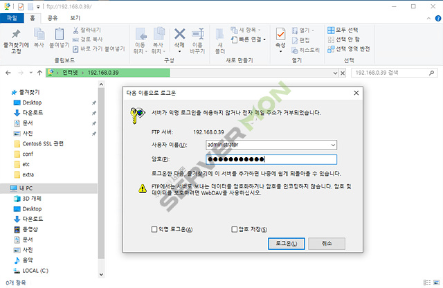 하지만 단순히 파일의 업로드/다운로드 가 목적이라면 별다른 프로그램 없이 윈도우 탐색기에서도 접속 가능 합니다.