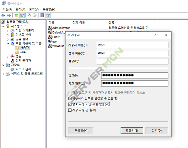 추후에는 보안을 위해 추가 사용자 생성을 하여 관리하시는것을 권장 합니다.