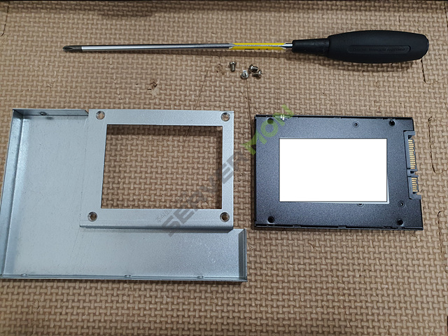 우선 2.5인치용 나사 4개와 십자드라이버로 변환가이드에 SSD를 장착해보겠습니다.