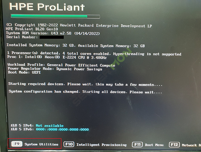 그 후 F9키를 눌러 System Utilities로 진입합니다.