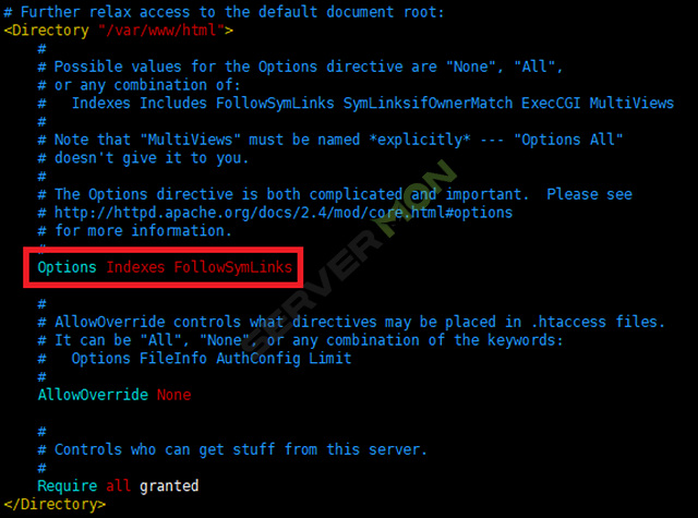2) 해당 보안을 적용할 디렉토리의 Options 지시자에서 Indexes 옵션을 제거 합니다.