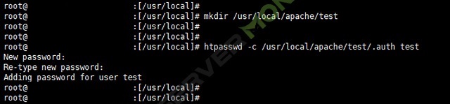 ▶ htpasswd -c /usr/local/apache/test/.auth test