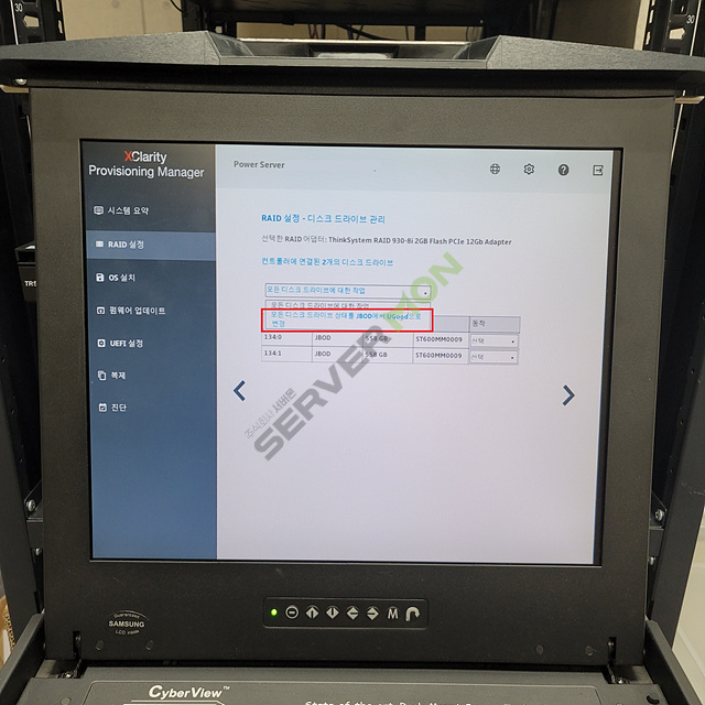 아래의 사진과 같이 JBOD -> UGood 으로 변경을 선택합니다