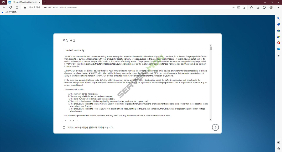 NAS 장비 이용에 관한 약관입니다. 동의 후 설정을 진행합니다.