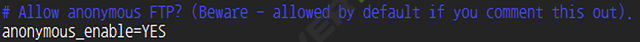 | anonymous_enable=NO | 익명 사용자로 FTP 허용 여부 설정 보안에 취약하니 NO 로 변경 |