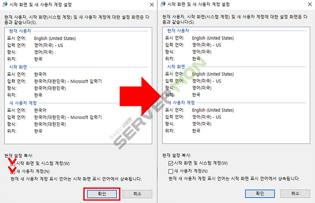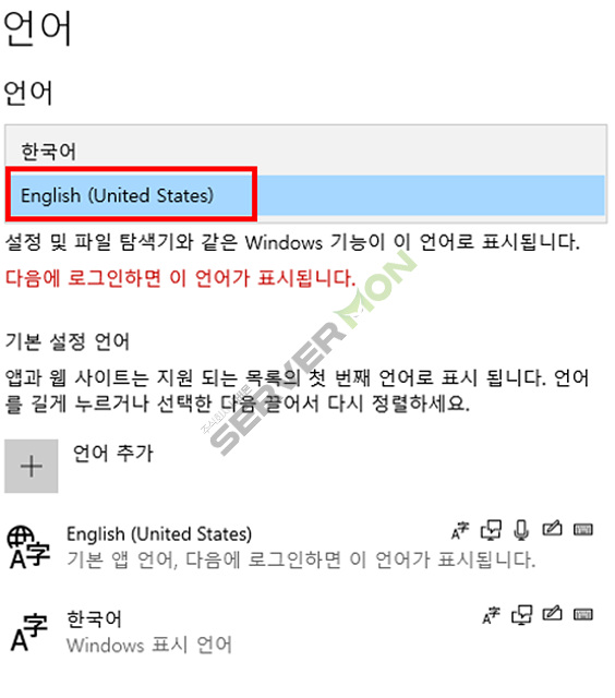여기 까지 설정을 하신다면 윈도우의 표시 언어는 영어로 변경이 됩니다.