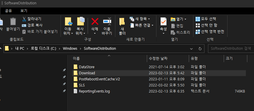 2. 윈도우 업데이트 임시 파일 삭제하기