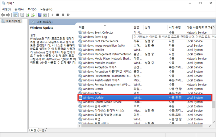 3. 윈도우 업데이트 기능 수동으로 변경