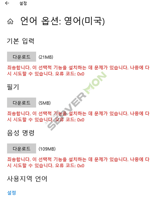 언어팩이 다운로드 되지 않는 경우가 있을 수 있습니다.