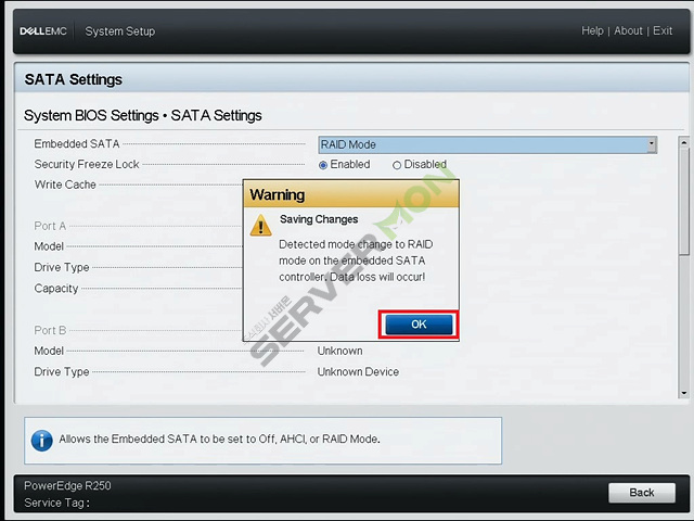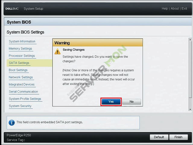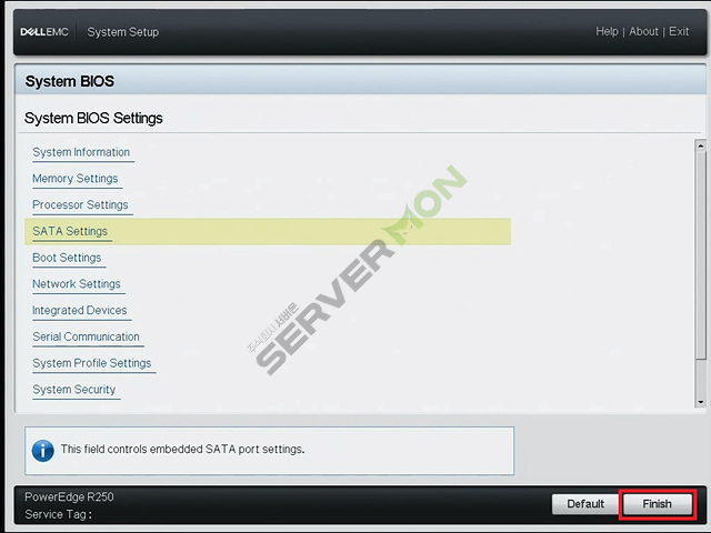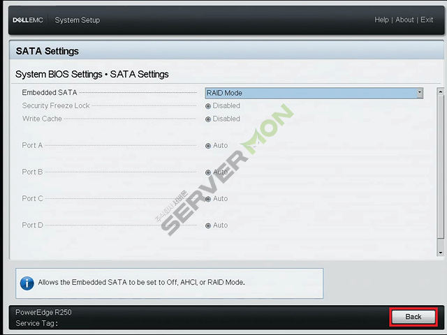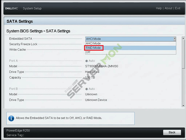 SATA Settings 에서 모드변경 후에는 반드시 서버재부팅이 필요합니다. 재부팅 전까지 변경된 내용이 적용되지 않습니다.