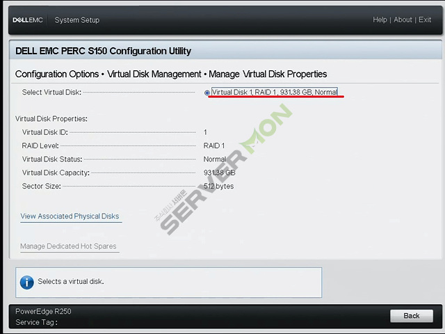 Manage Virtual Disk Properties를 선택하면 현재 생성된 Virtual Disk목록을 확인 할 수 있습니다.