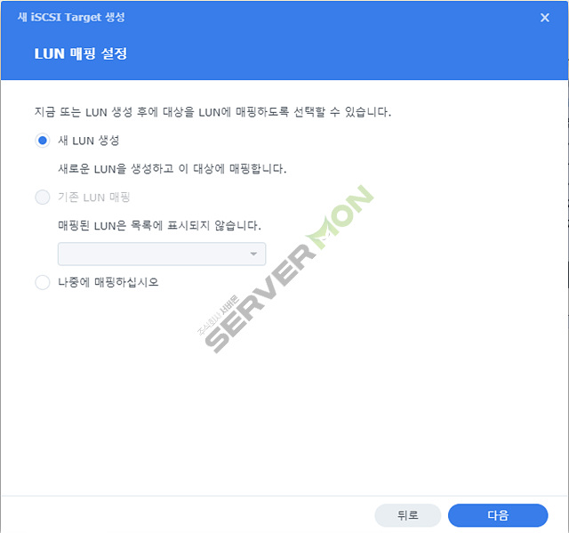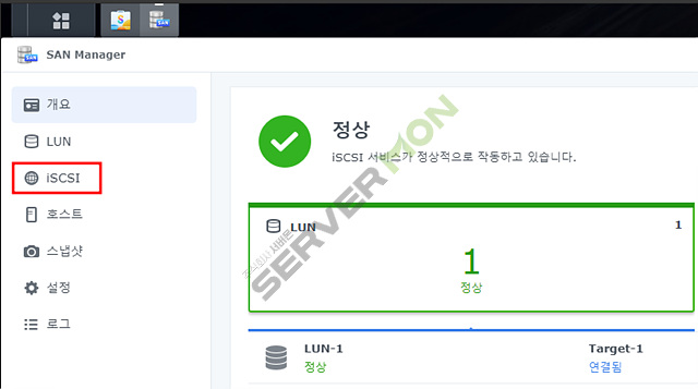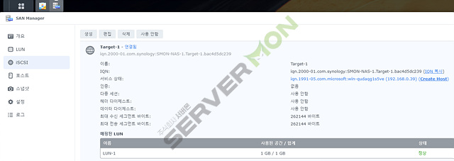 먼저 시놀로지 nas 의 DSM 에서 LUN 설정과 Target 설정을 합니다.