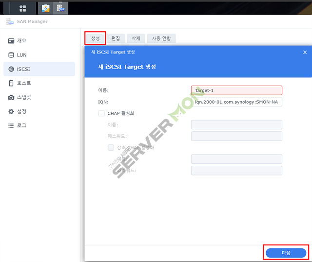 1. Synology nas 에서 iscsi 설정