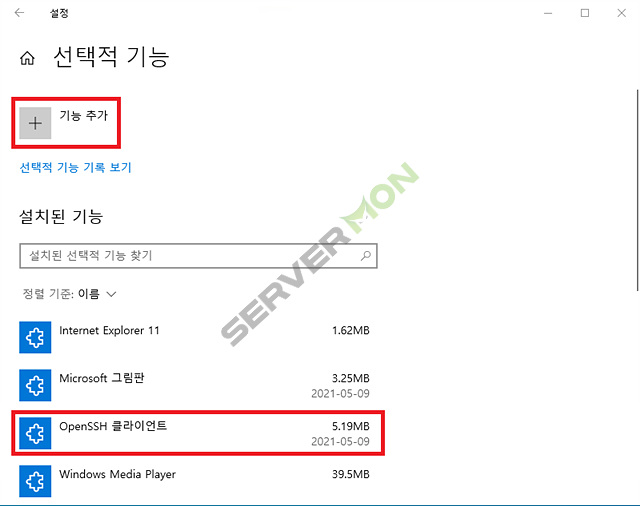 하단에 OpenSSH 클라이언트를 표시해놓은 것은 클라이언트는 기본적으로 제공하나 서버는 별도로