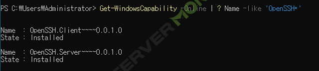 - Get-WindowsCapability -Online | ? Name -like 'OpenSSH*'