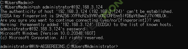 Linux 및 Ubuntu 등에서도 SSH 를 통하여 Windows Server 에 접속이 가능 합니다.