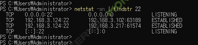 - netstat -an | findstr 22 / 22번 포트에 대한 허용 상태 확인
