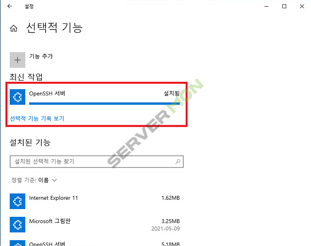 4) 설치가 완료되면 OpenSSH 가 설치된 사항을 확인할 수 있습니다.